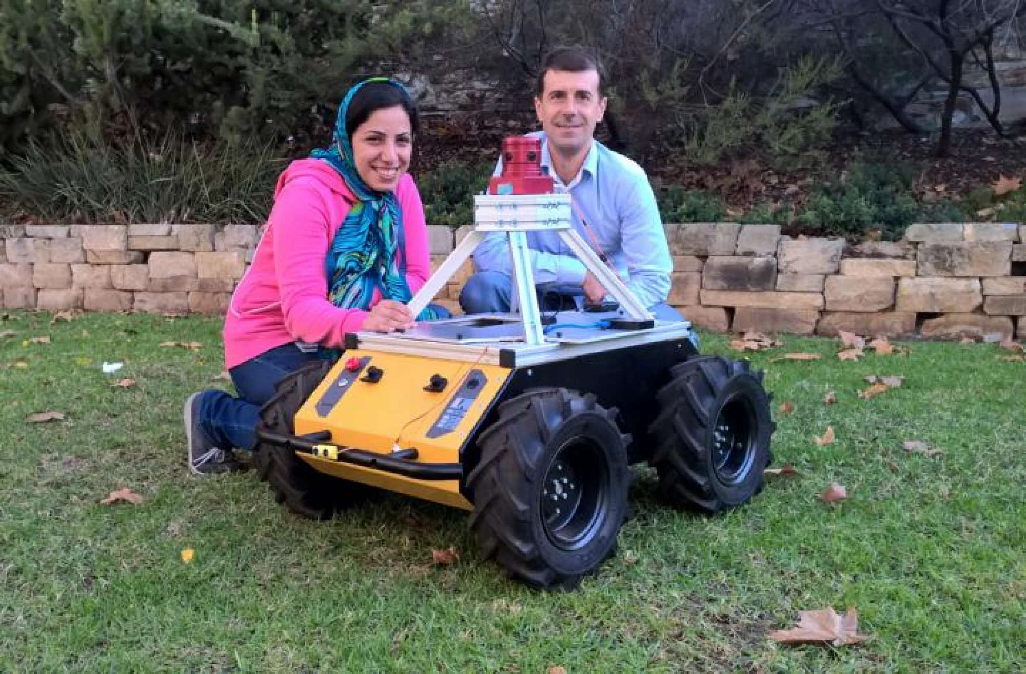 Scientists Zahra Bagheri and Benjamin Cazzolato, and robot.